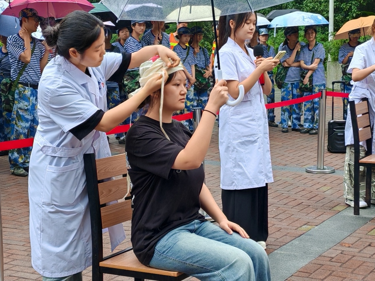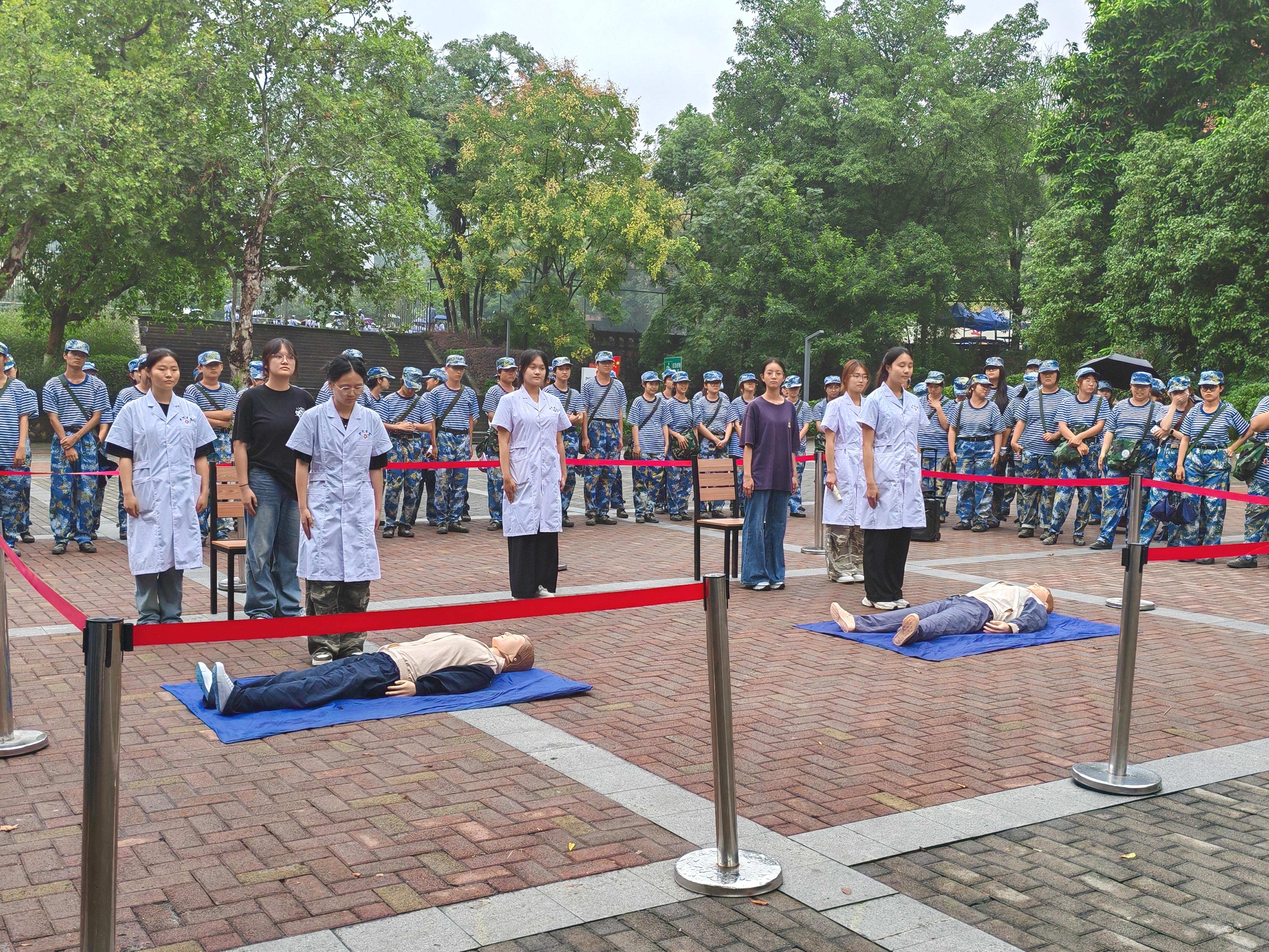 为筑牢校园安全防线,提升2025级新生安全素养与应急处置实战能力,9月19日,学校组织2025级新生开展应急疏散演练,由我学生进行心肺复苏、头部帽氏包扎等急救技能演示,为新生带来一场兼具专业性与实用性的安全培训。