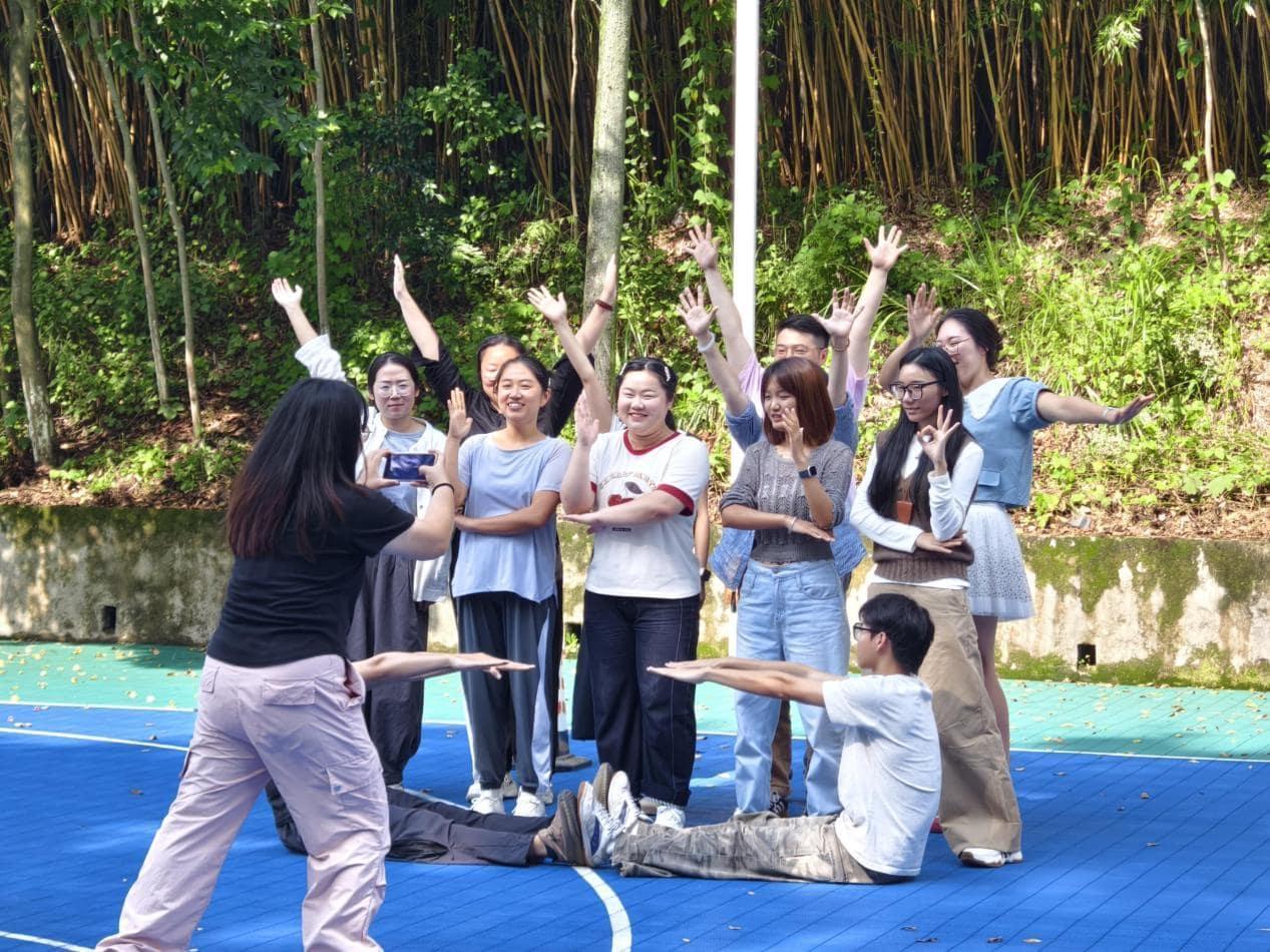 “花开花落”游戏率先破冰,教师们闻声而动、同步协作,在指令呼应中迅速拉近距离,夯实团队默契根基。抽签分组后,各队高效完成组长推选、队名确立、口号凝练与队形设计,尽显护理教师队伍的协作素养与执行能力。