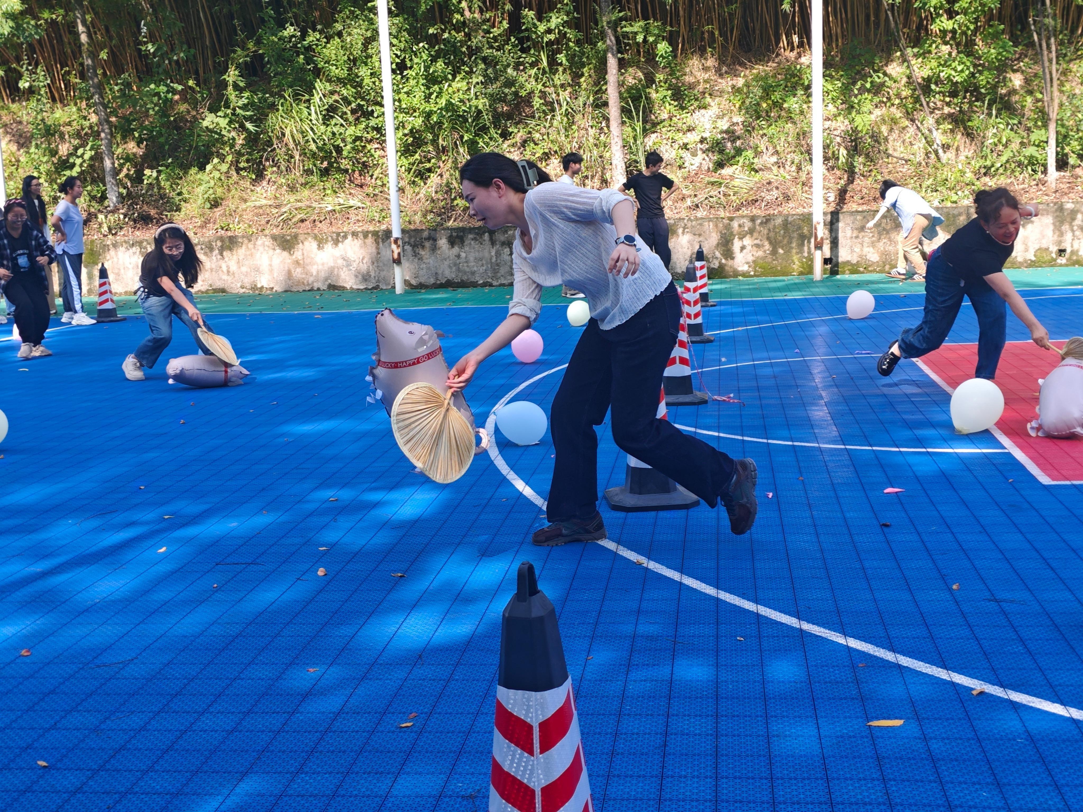 分组竞技环节亮点纷呈。“赶猪”接力考验手眼协调与反应速度,展现教师们的灵动应变;“投壶”竞技融合传统韵味与精准把控,彰显专注品格;“乒乓球接力”聚焦平衡掌控与团队配合,锤炼协作意识;“你划我猜”依托肢体与语言互动比拼默契,现场氛围热烈融洽。老师们积极参与,相互沟通协作,增进了老师们的互动与了解。