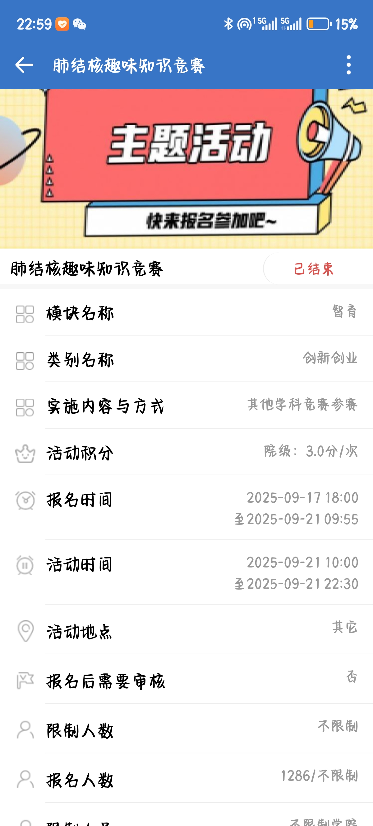 本次竞赛设计了“线上问卷答题、线下模拟实操、情景科普互动”三大环节,题目聚焦肺结核传播途径、科学预防措施、国家免费诊疗政策等关键内容,并深度融入校园生活场景,实现知识传递与实际应用的无缝衔接。经严格初赛选拔,30名学生晋级决赛。