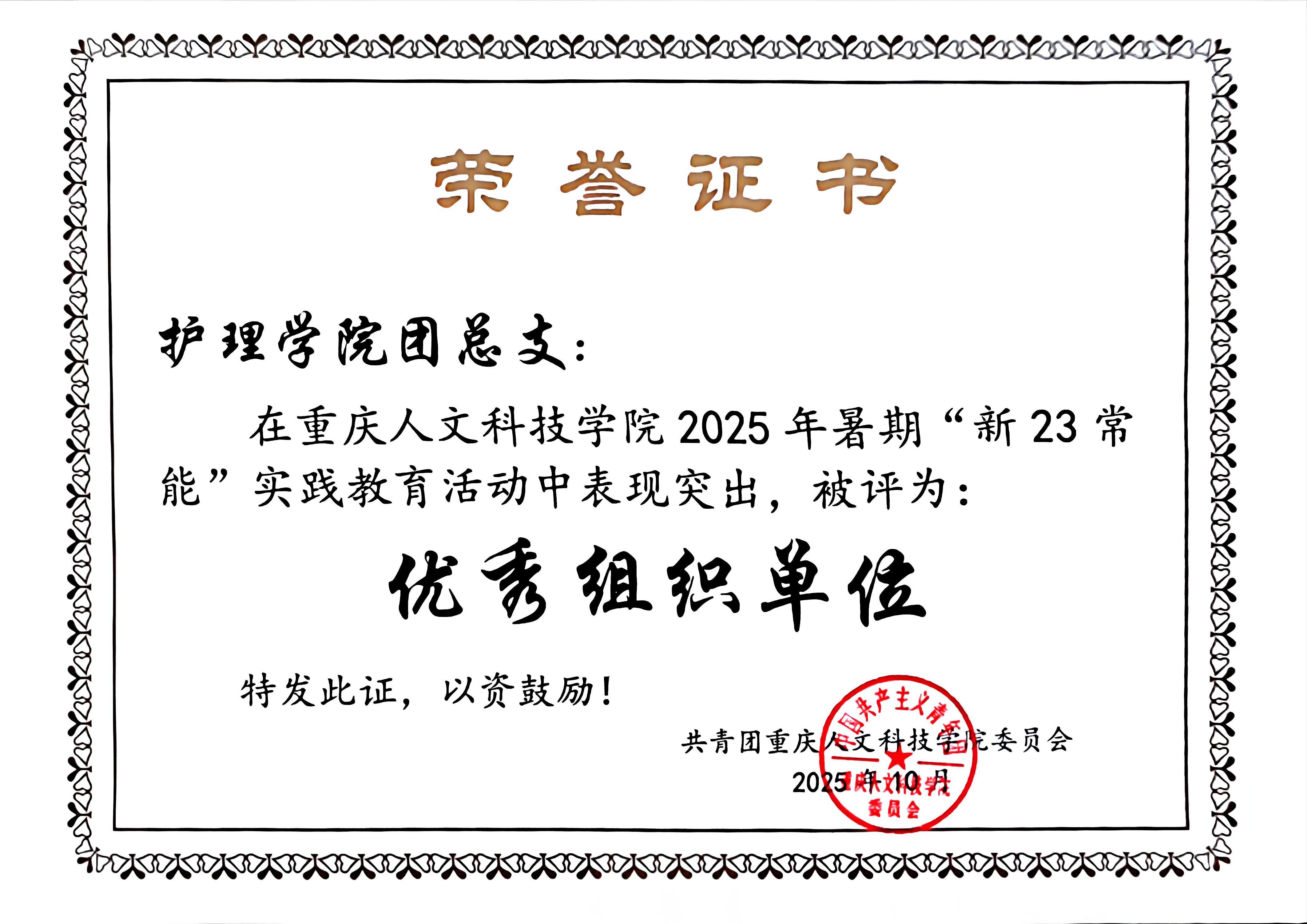 近日,学校对2025年暑期“新23常能”实践教育活动进行表彰。学院积极组织,894名学生在急救等常能实践中主动参与。21名学生荣获“先进个人”荣誉称号,2名教师荣获“优秀指导教师”荣誉称号,团总支获评“优秀组织单位”。