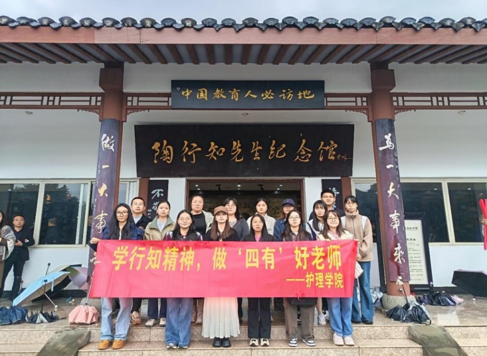 为深入贯彻落实立德树人根本任务,大力弘扬教育家精神,切实加强护理师资队伍建设。10 月 29 日,护理学院组织新进教师前往草街陶行知纪念馆,开展“学行知精神,做‘四有’好老师”主题教育活动。