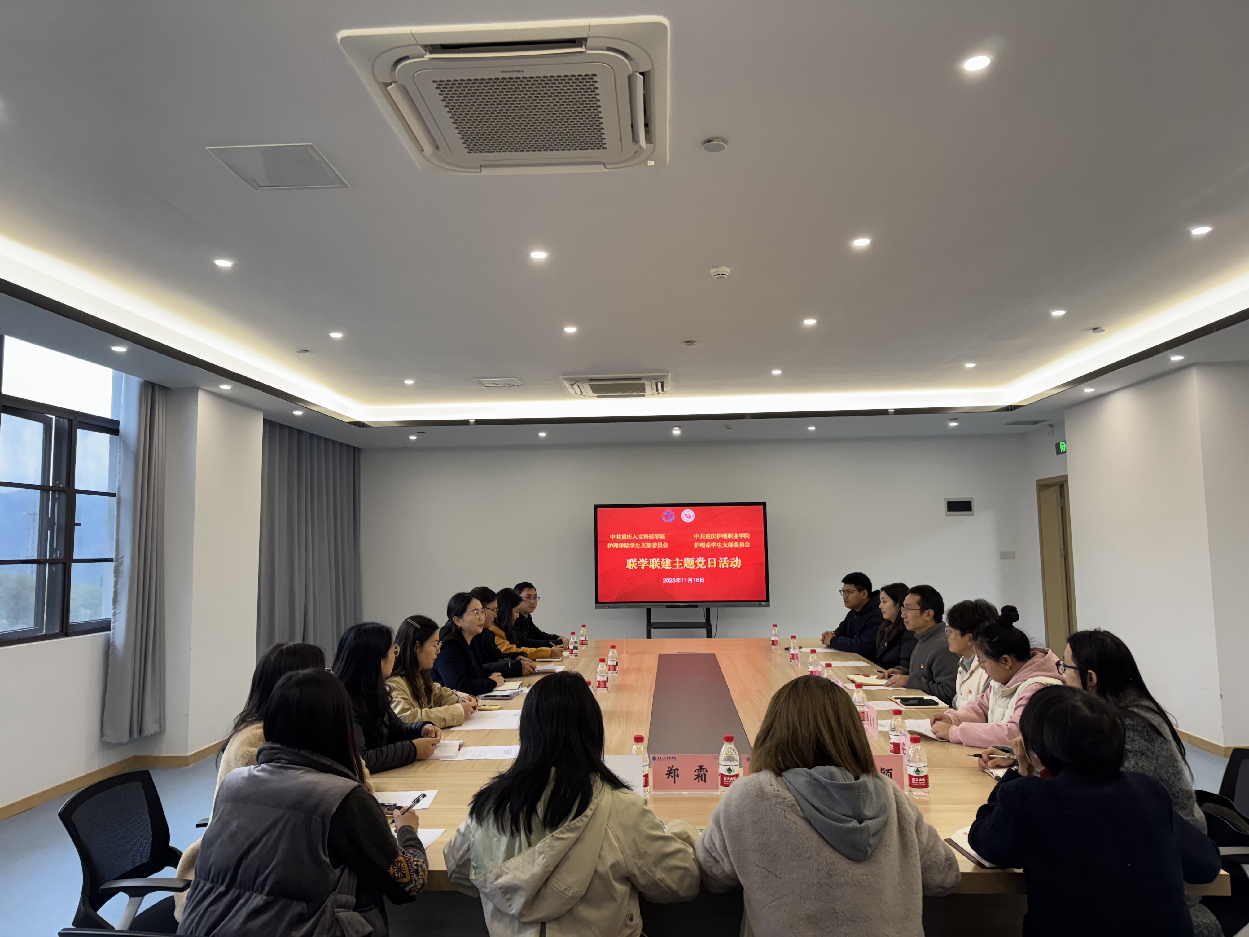 为深化党支部建设,拓展校际党建工作新格局,11月18日上午,重庆护理职业学院护理系学生党支部与我校护理学院学生党支部联合举办了一场以“党支部联合建设”为主题的联学联建活动。重庆护理职业学院护理系学生党支部书记兼学生工作办公室主任徐燕及辅导员参加。活动由学校护理学院党总支书记彭涛主持。