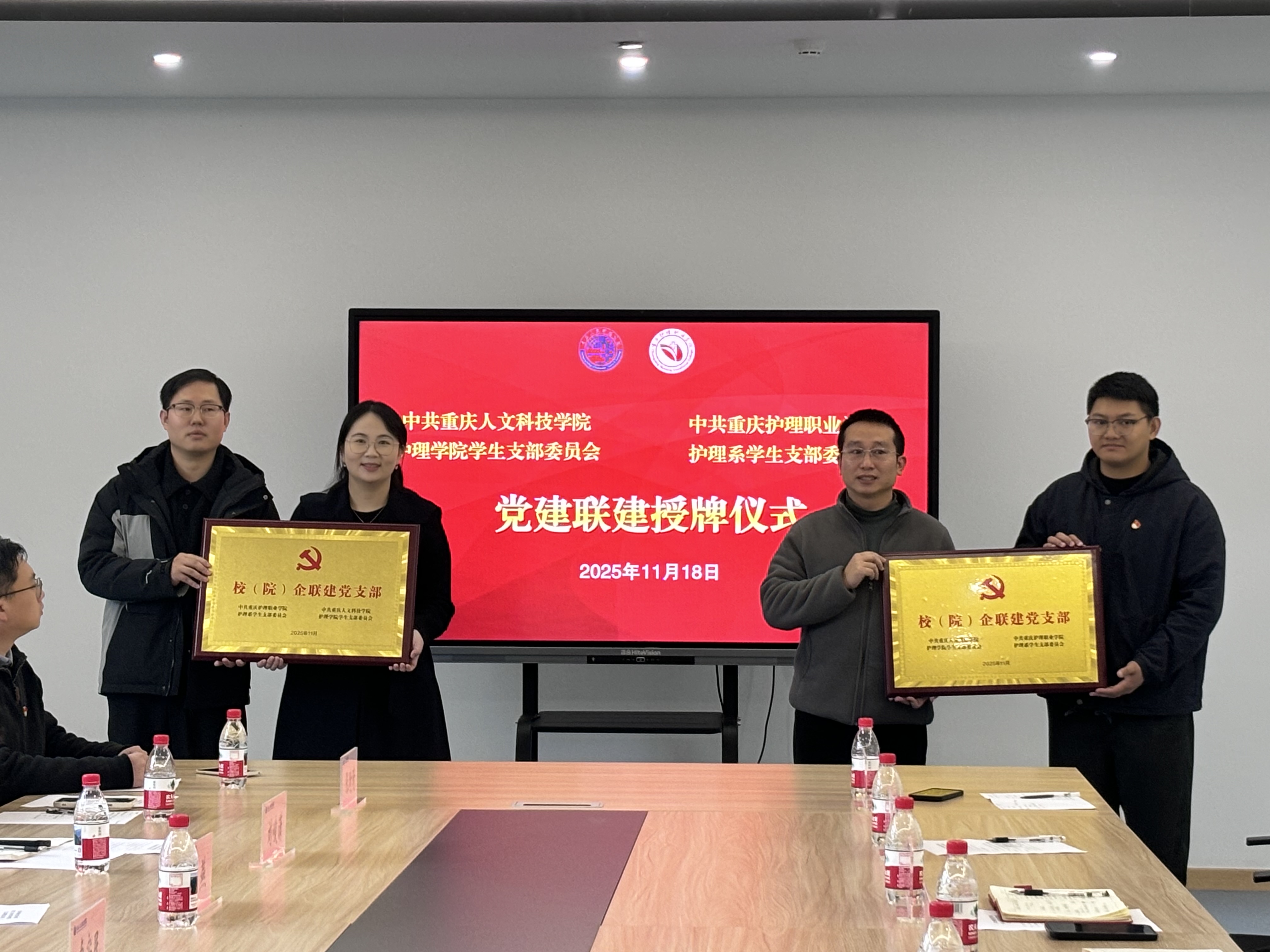会上举行了简洁而庄重的党支部联建授牌仪式,标志着两校护理专业学生党支部结对共建工作正式启动,为后续常态化、深层次的合作拉开了序幕。