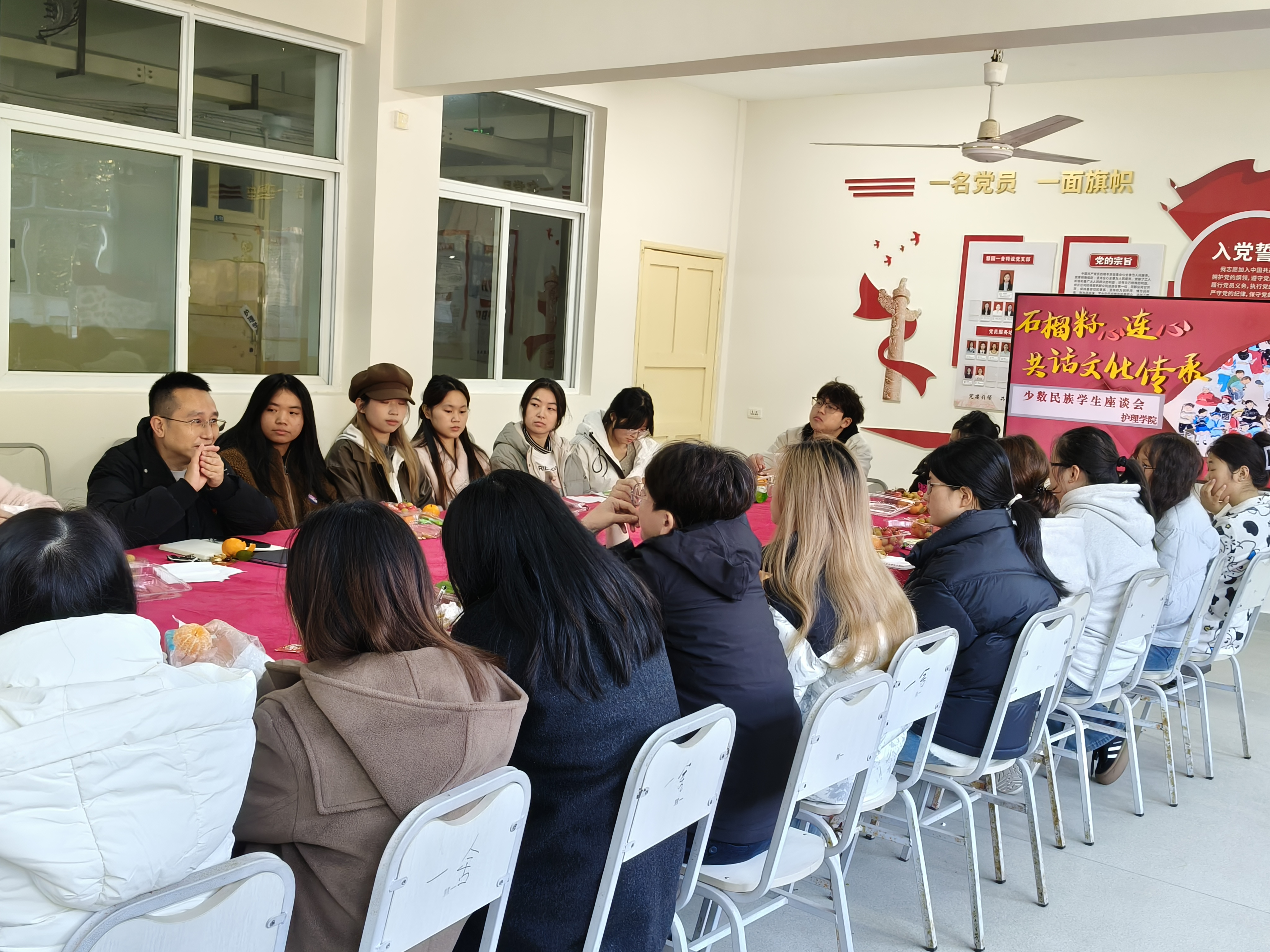 为深入了解少数民族学生的学习生活情况,倾听学生心声,切实帮助他们解决实际困难。11月27日,护理学院党总支在慧园一舍二楼党员活动室召开“石榴籽心连心·共话文化传承”少数民族学生座谈会,党总支书记彭涛、副书记金治,党总支委员何丹、刘敏、李春秀,20余名少数民族学生代表参加会议,会议由彭涛主持。