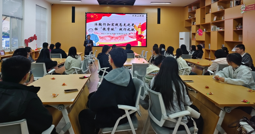 2025年11月,护理学院学生党支部联合慧园一舍特设党支部于慧园一站式服务大厅举办“沐陶行知实践为先之光,拓‘教学做’践行之航”主题小讲堂活动。