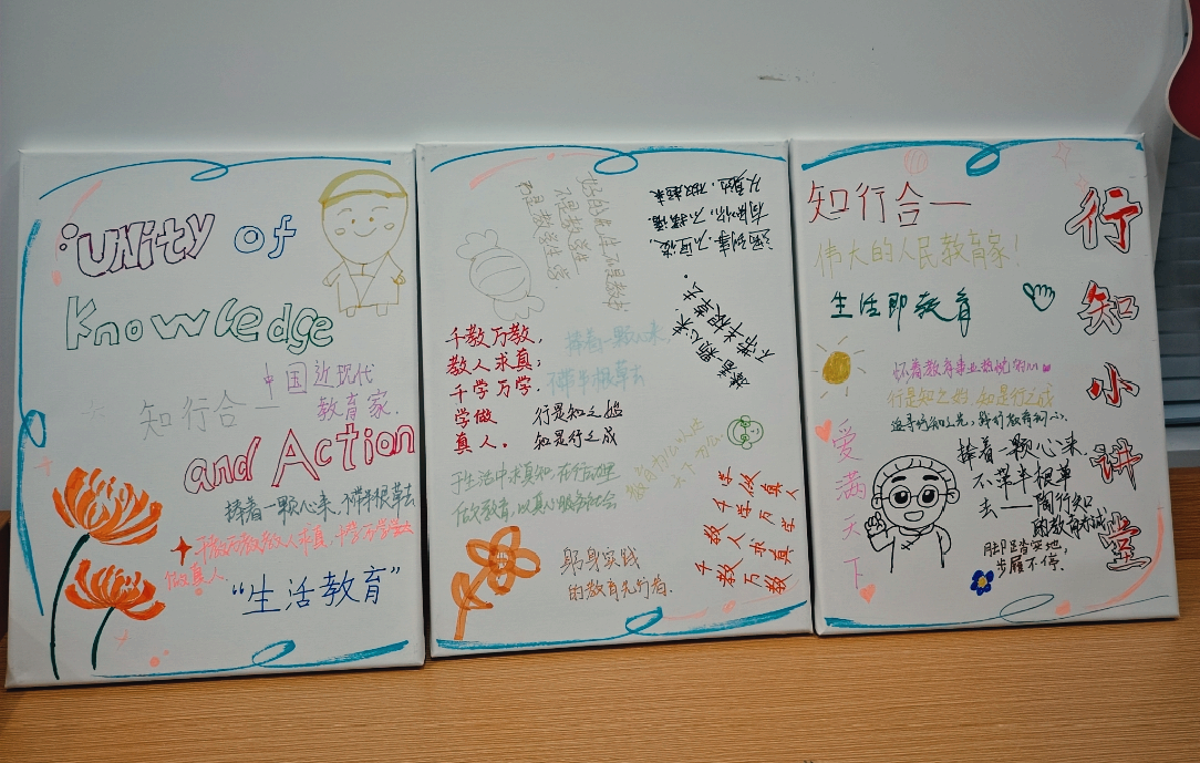 “书签镌敬”活动中,大家怀着深深敬意书写“实践教育的开拓者”“教育初心的守护者”等感悟,汇聚成一条饱含深情的敬意长廊。“知行叙志”分享会上,师生结合研读书籍,热烈畅聊陶行知理念融入学习工作的实践经验,思想火花不断碰撞。“共筑知行”环节里,众人在画纸上郑重写下“以行践知,传承教育初心”等决心,共同勾勒出“传承行知精神”的温暖图景。