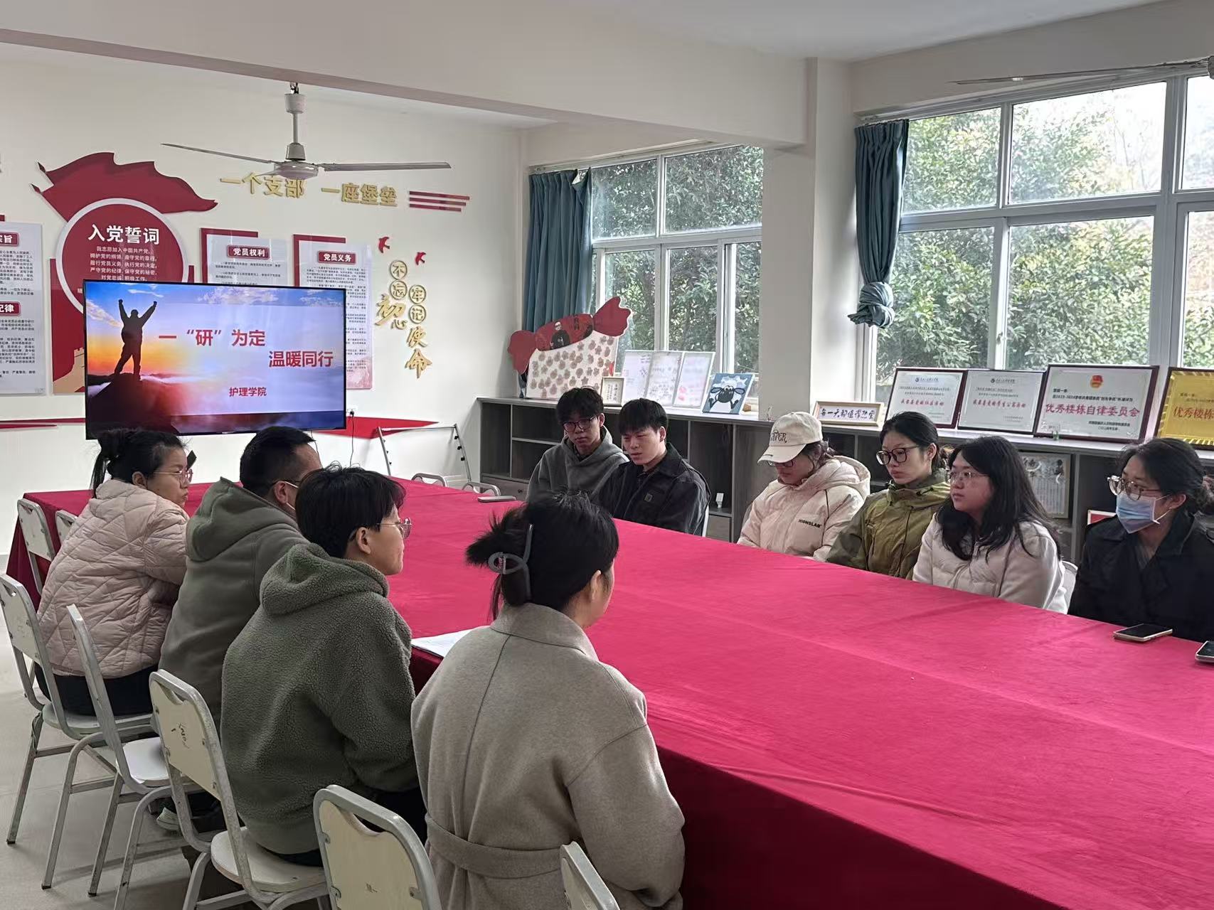 12月1日,护理学院于慧园一舍党员活动室举办“一‘研’为定,温暖同行”考研慰问活动。护理学院党总支书记彭涛、副书记金治、团总支书记任雨洁、驻楼辅导员李春秀出席活动,7名在校备考学生参加活动。活动由金治主持。