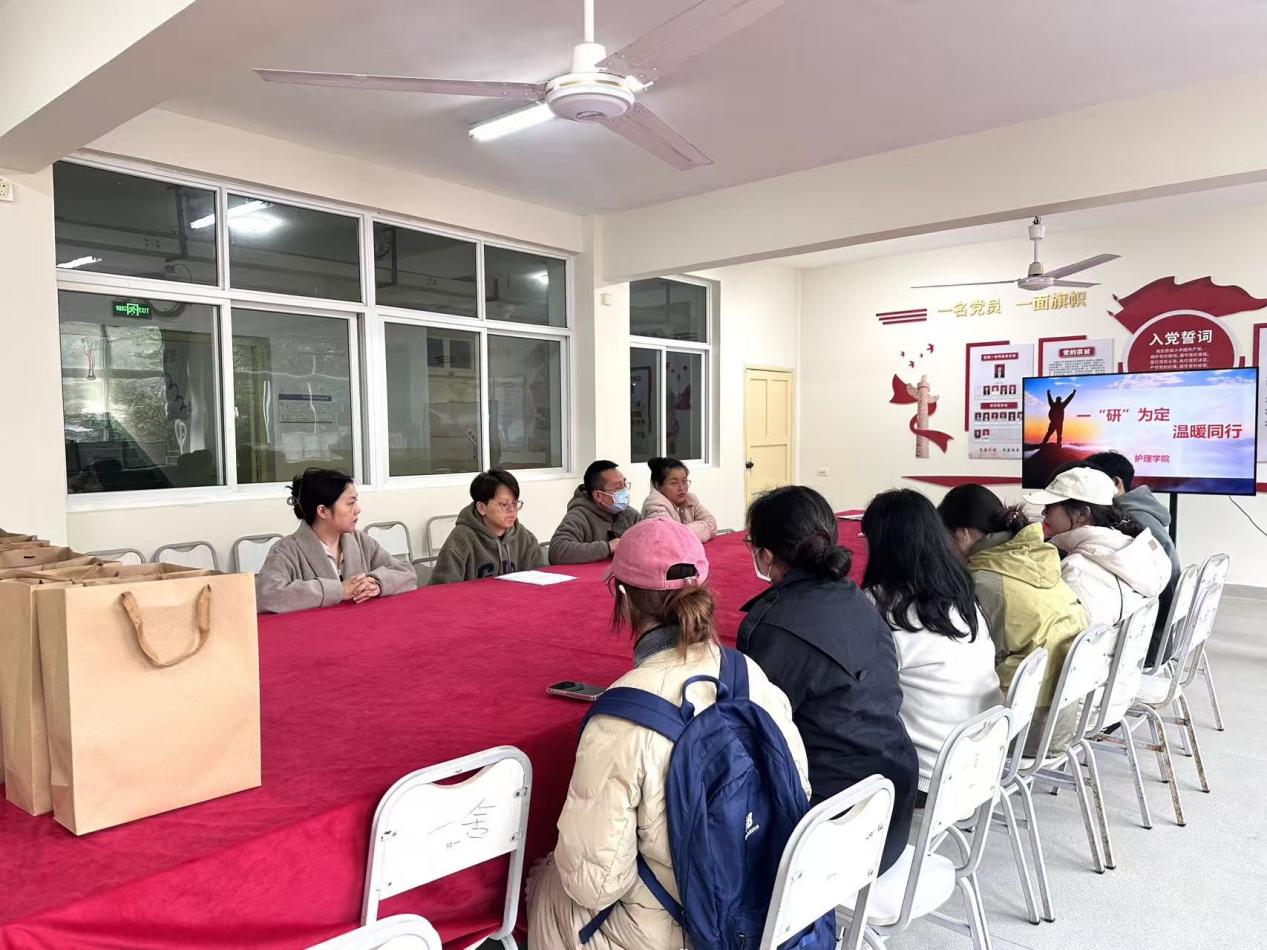 12月1日,护理学院于慧园一舍党员活动室举办“一‘研’为定,温暖同行”考研慰问活动。护理学院党总支书记彭涛、副书记金治、团总支书记任雨洁、驻楼辅导员李春秀出席活动,7名在校备考学生参加活动。活动由金治主持。