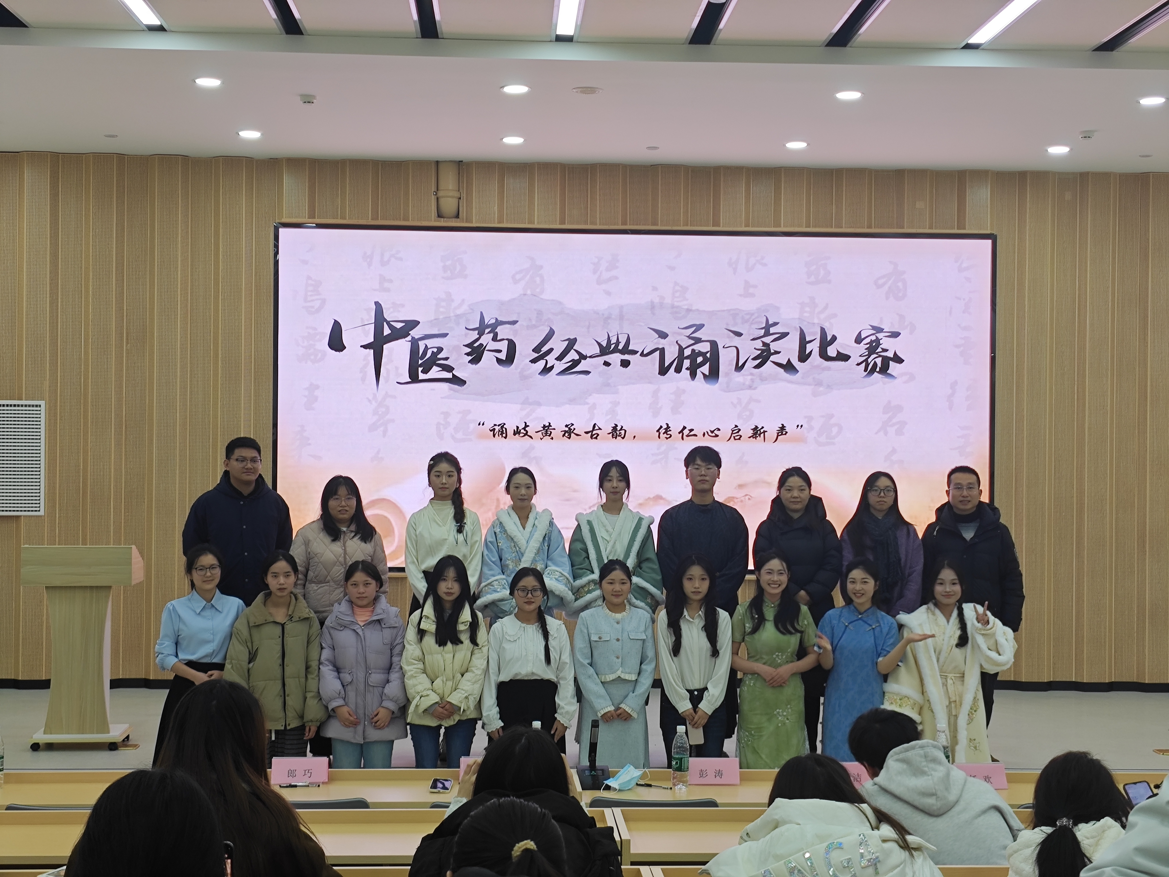决赛现场,9支队伍的诵读展演如画卷徐徐铺展,从《黄帝内经》“治未病”的深远智慧,到《本草纲目》辨药识性的严谨细致;从《伤寒杂病论》辨证施治的诊疗精髓,到《千金方》“大医精诚”的人文底色,同学们以声为媒,不仅还原了典籍文字的韵律之美,更精准诠释了中医药文化的精神内核,让这份沉淀千年的文化瑰宝在青春舞台上焕发出生生不息的活力。