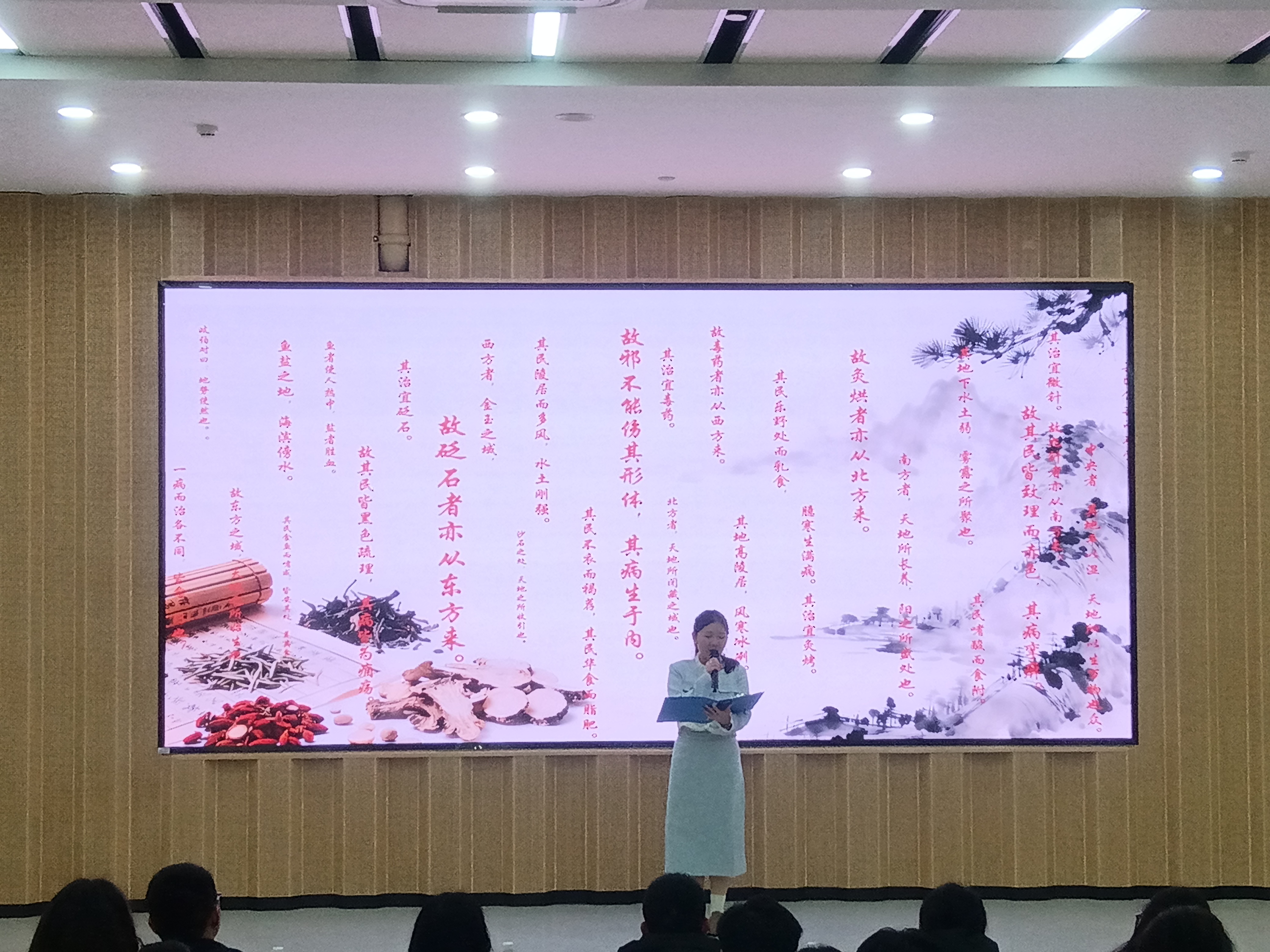 决赛现场,9支队伍的诵读展演如画卷徐徐铺展,从《黄帝内经》“治未病”的深远智慧,到《本草纲目》辨药识性的严谨细致;从《伤寒杂病论》辨证施治的诊疗精髓,到《千金方》“大医精诚”的人文底色,同学们以声为媒,不仅还原了典籍文字的韵律之美,更精准诠释了中医药文化的精神内核,让这份沉淀千年的文化瑰宝在青春舞台上焕发出生生不息的活力。