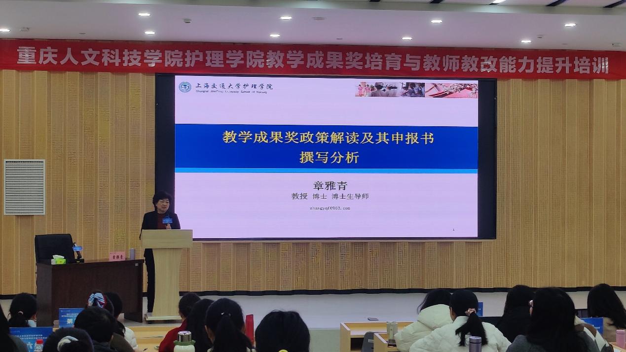 章雅青教授首先围绕“护理教育教学改革之教学方法运用与思考”进行了专题辅导,结合案例深度解析了多种先进教学方法的实践应用。随后,她就“教学成果奖政策及申报书撰写”进行了系统讲解和技能训练,为教师们厘清了成果奖申报的关键要点与常见误区。
